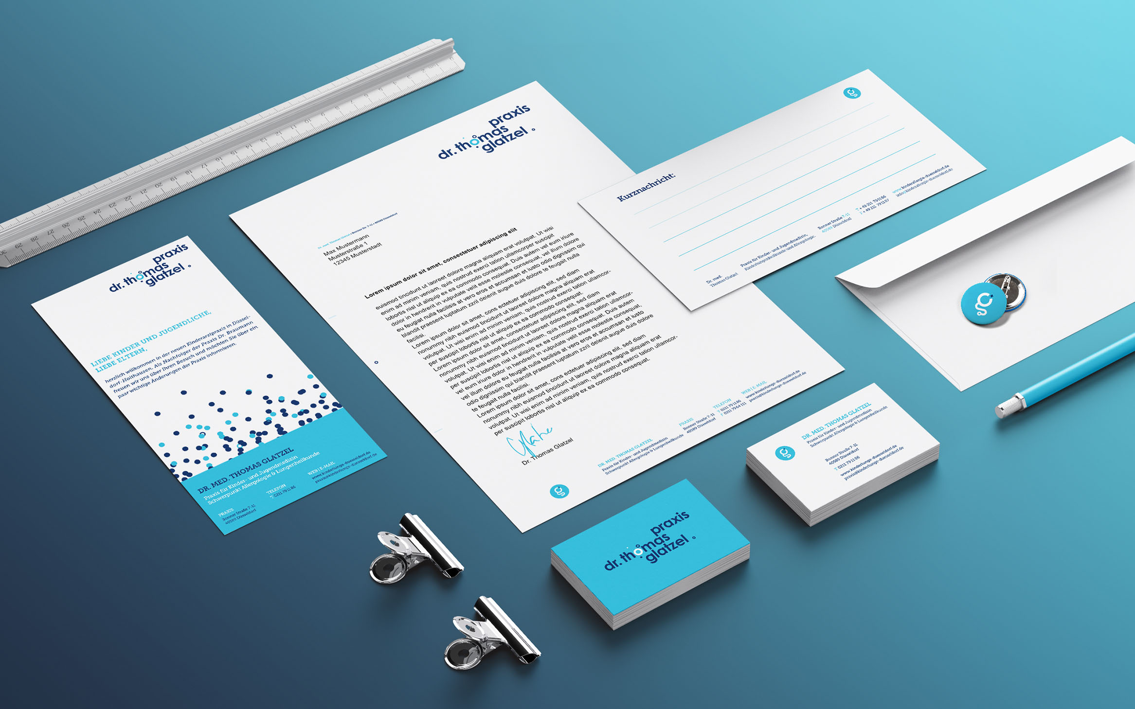 Tief einatmen! Helden&Diebe entwickeln ein umfangreiches Corpoarate Design für den Kinder- und Jugendmediziner Dr. Thomas Glatzel. Sein Schwerpunkt, Allergologie und Lungenheilkunde war Gestaltungsgrundlage für das neue Erscheinungsbild ... und so schweben Millionen kleiner Lungenbläschen durch Visitenkarten, Briefbögen und Flyer.
